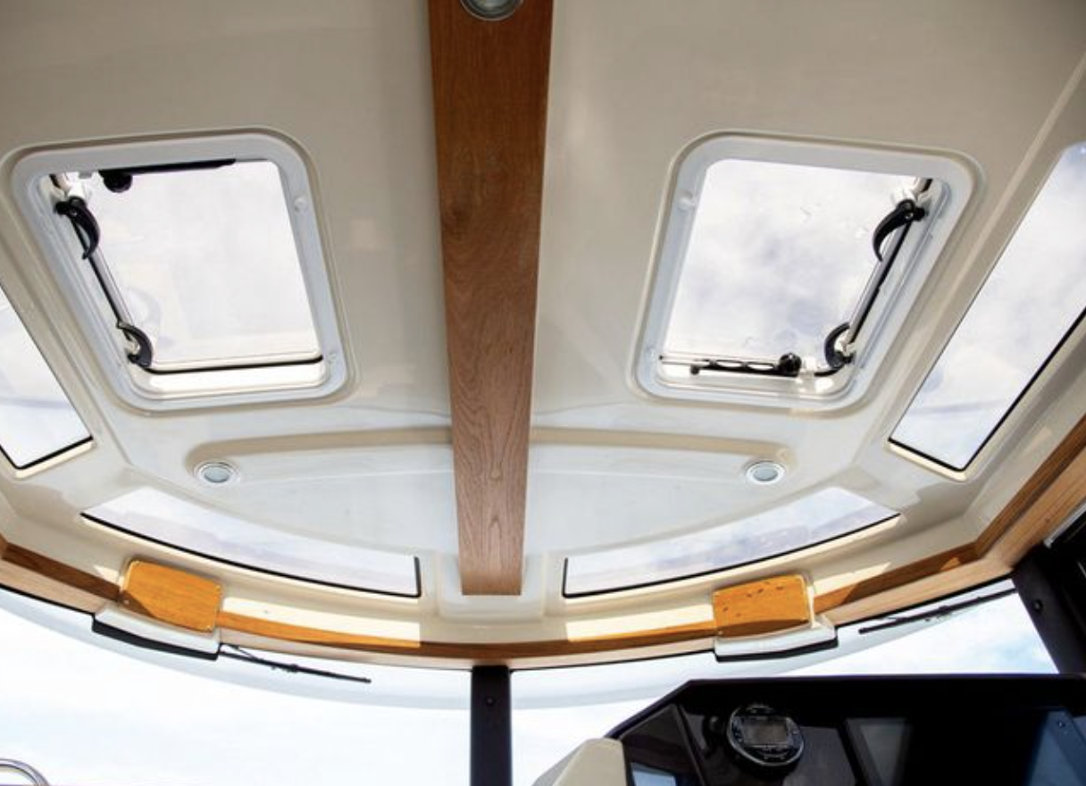 - Dual trumpet electric horn Illuminated compass Integrated trailering lights (patented) Navigation lights, with light boards