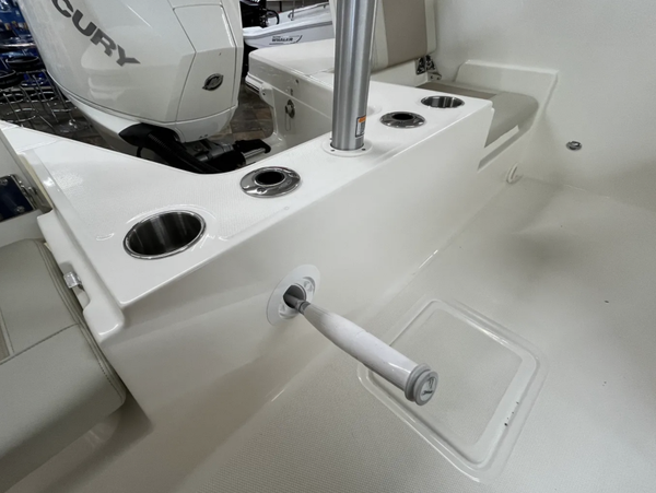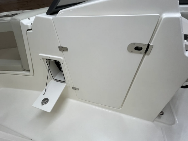 • Starboard console storage with stainless steel latch