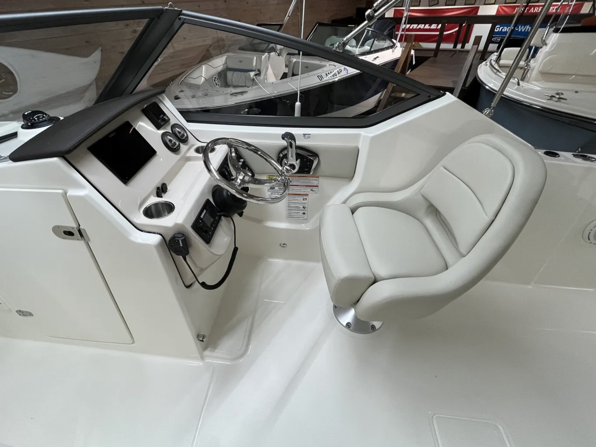 • Port and Starboard – Custom helm seat with pedestal and slide
