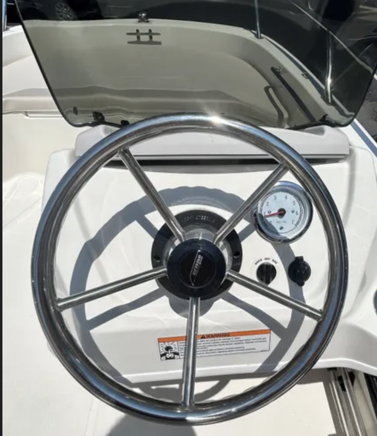- Console side seat cooler • Fiberglass helm bench seat with drink holders (2)